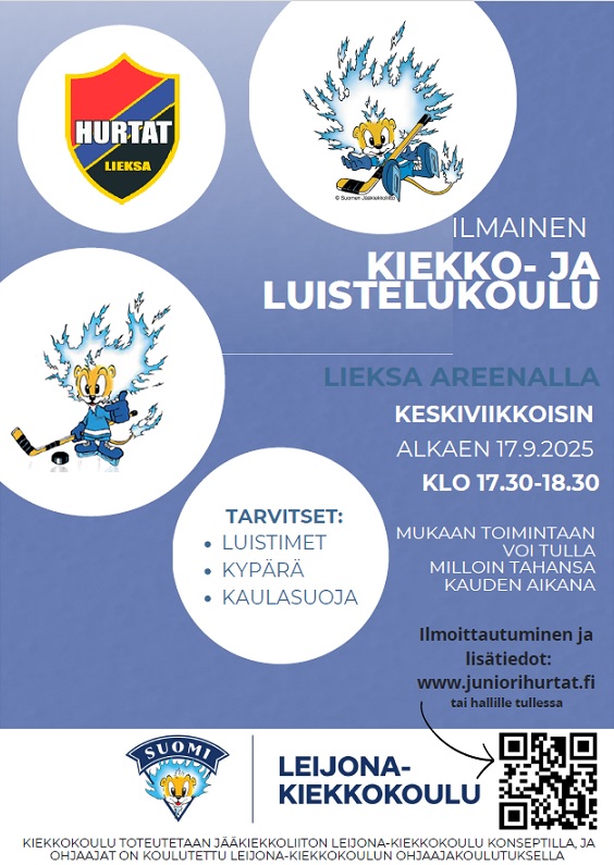 Juniori-Hurttien Leijona-kiekko- ja luistelukoulun vastuuvetäjinä toimivat Taru Toivanen ja Essi Oinonen apunaan koulutettuja ohjaajia ja junioripelaajia.